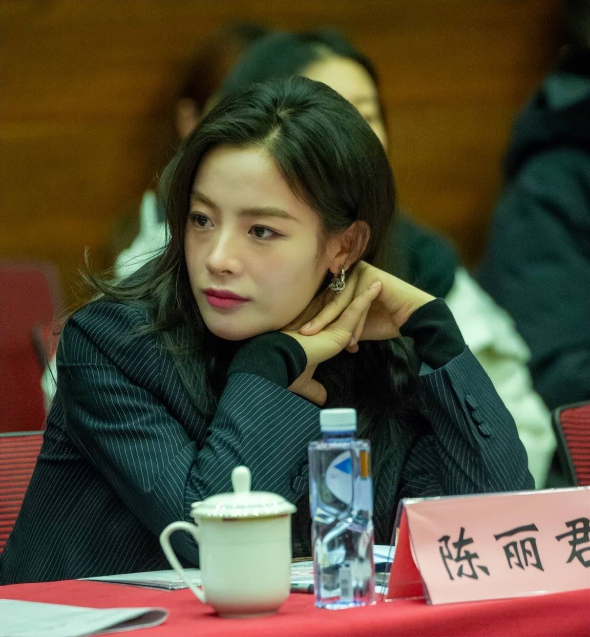 而陈丽君也不负众望,当天只穿了一身黑色的条纹西装,没有精致的妆容加持,在生图下脸上的黑眼圈清晰可见,皮肤状态也因为连轴转的工作显得有些暗沉。